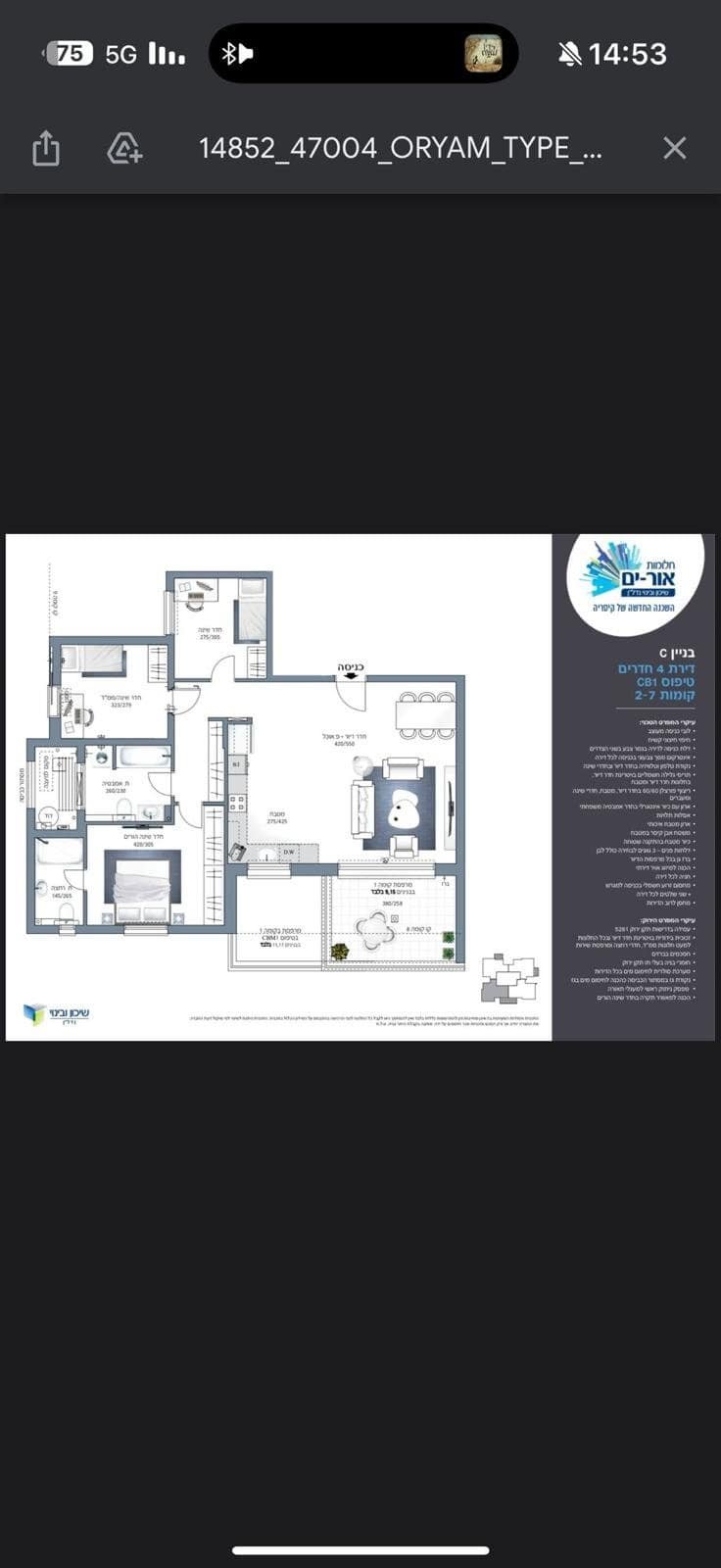 למכירה דירת 4 חדרים דגם גדול שיכון בינוי נוף לכיוון מזרח נוף פתוח